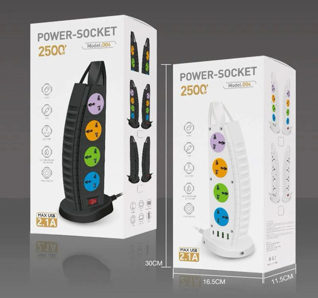 حافظ على أجهزتك مشحونة بأمان مع موزع الطاقة البرجي ، المصمم للمنازل والمكاتب في المملكة العربية السعودية . بفضل مقابسه المتعددة ومنافذ USB، يتيح لك هذا الموزع البرجي شحن وتوصيل عدة أجهزة في وقت واحد مع ضمان الحماية من التيار الزائد والسلامة . تصميمه الرأسي الموفر للمساحة يجعله مثاليًا للمكاتب وأماكن العمل والاستخدام العائلي.